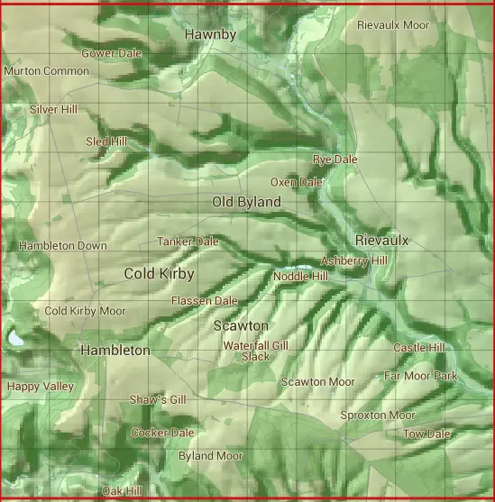 The SE58 10 square kilometre grid intersects with the settlements of Hawnby & Oldstead.